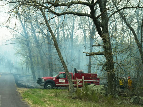 A short while later, I drove past this fire truck and a suspicion I’d had was confirmed – namely, that the forest-fire I had just seen and the fire that had recently occurred along the trails I’d taken to get to the top of Taum Sauk Mountain and to the Mina Sauk Falls were controlled burn-offs. Fire management programmes like this are common in the southern United States, partly as way of reducing the likelihood of large forest fires being caused by lightning strikes … and having solved that burning question, I can now end this album. (This is the last picture in this album.) |