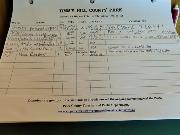 I filled in the visitor registration book. So far, all the visitors on this page were from places beginning with “W”: I’m from Wellington, while everyone else was from either WI or WA (