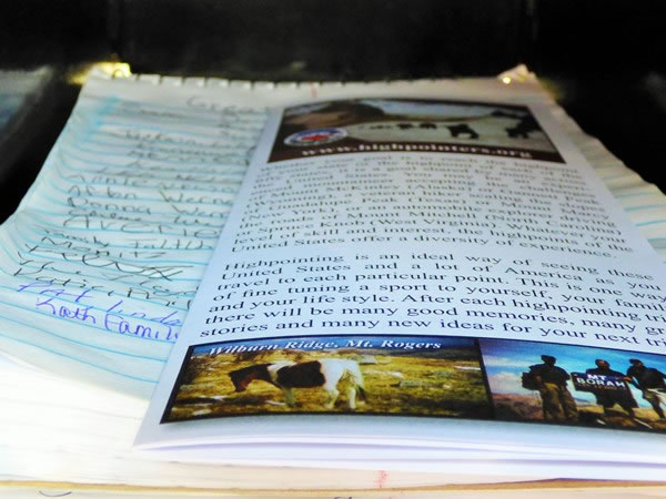 Inside the mail box were the summit register and pamphlets about the Highpointers Club. The pamphlets include the following words: “Highpointing is an ideal way of seeing these United States and a lot of America as you travel …”. I can certainly attest to that. |