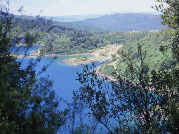 Looking down onto the Onepoto intake for hydroelectric power generation from the lake. Note, though, that the lake is not a hydro dam. As was mentioned earlier, the lake was formed about 2,200 years ago as a result of huge landslip. Power stations were built on waterways below the lake both before and after the Second World War. |
