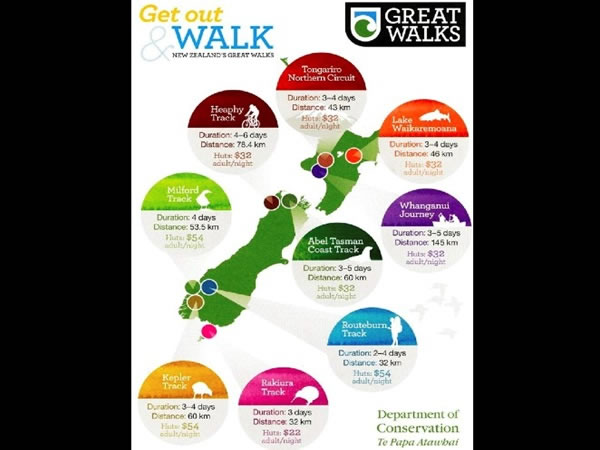Heather and I started doing New Zealand’s Great Walks long before they were officially called Great Walks. We hiked our first one, the Abel Tasman Coastal Track, in January 1983, and four years later we did the Lake Waikaremoana walk. Following those first two Great Walks, we did six more between 1995 and 2013. In the order in which we completed them, they were the Milford Track, the Routeburn Track, the Heaphy Track, the Kepler Track, the Rakiura Track, and the Tongariro Northern Circuit. This meant that we had just one more of the then nine New Zealand Great Walks to do – namely, the Whanganui Journey. |