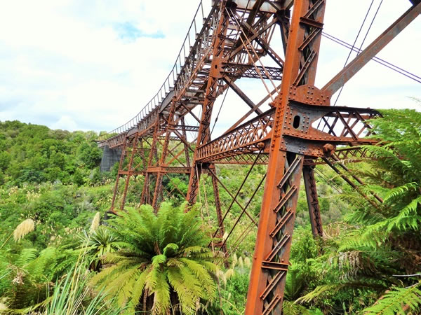The remains of the Taonui viaduct, which was also built in 1908 – in an “age of steel, when almost all engineering challenges were answered with steel plates, beams, girders, trusses, held together with bolts and rivets.”