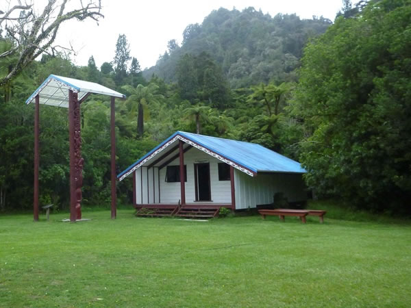 The meeting house on the Tieke Kainga marare, where the local hapu (
