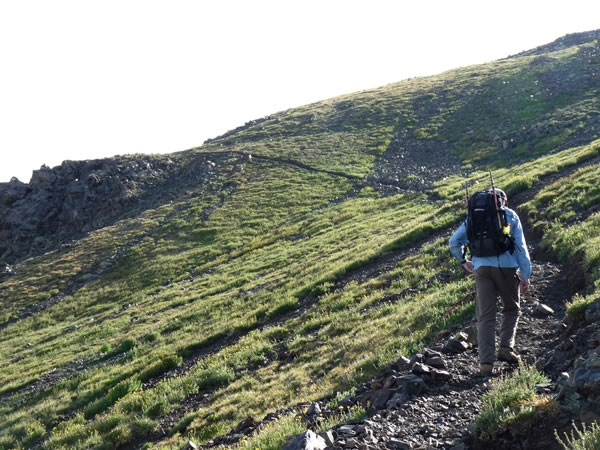 ... after which we continued making our way up the mountain. On the top of the rocky spur on the skyline on the left hand edge of the photograph were …