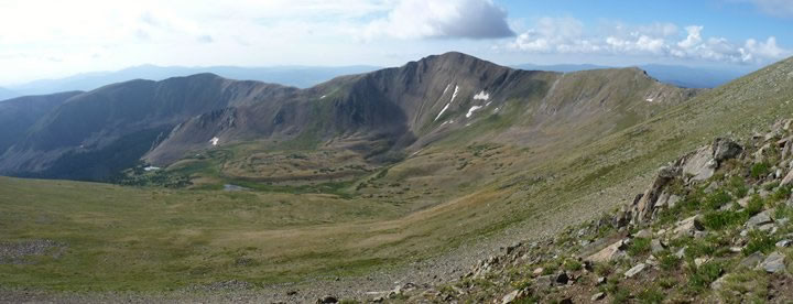 Taken from Wheeler Peak’s main ridge line, this is a two-shot panoramic picture looking south-east towards Simpson Peak. Wheeler and Simpson Peaks are part of the magnificently named Sangre de Cristo – Blood of Christ – mountains, a range that extends from southern Colorado into northern New Mexico. |