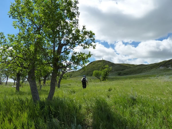 Roughly half-way up the butte, there’s a broad shelf-like plateau that’s dotted with a few trees.
