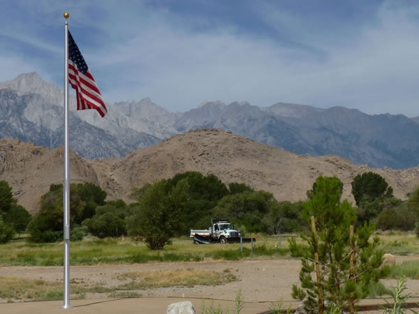 Lone Pine is situated due east of Mt Whitney, and the mountain is clearly visible to the right of this flagpole in the grounds of …