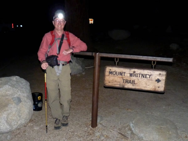 ... and I set out on the Mt Whitney trail (and as Eric had decided to use only one of his trekking poles for the first part of the climb, I borrowed his other pole, something I don’t normally use when hiking). The Whitney Portal is 8,360 feet / 2,548 metres above sea-level, and we had 10.7 miles / 17.2 kms ahead of us – a vertical ascent of 6,137 feet / 1,871 metres – in order to reach the summit. |