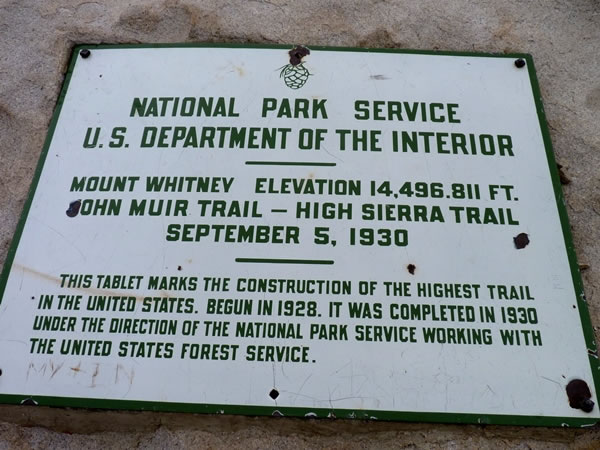 The plaque at the summit of Mt Whitney, which is 14,497 feet / 4,419 metres above sea-level.
