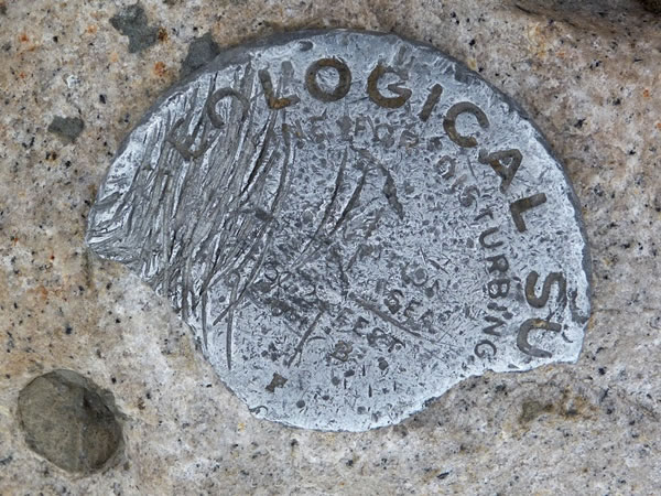 The United States Geological Survey (USGS) marker at the summit of Mt Whitney.