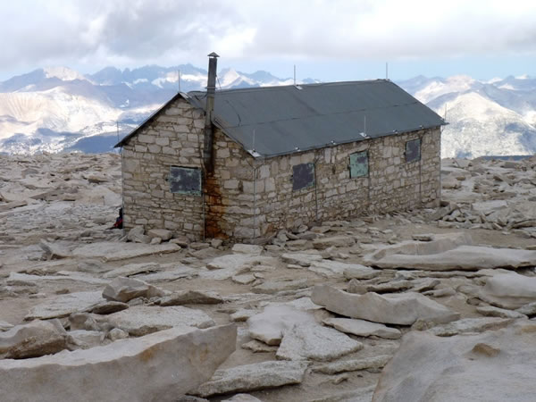 The shelter on Mt Whitney’s summit plateau was built in 1909 to help the Smithsonian Institution’s scientific studies. Ironically, another impetus for originally building the hut was the fact that a US government employee had been killed by lightning on Whitney’s summit in 1904 … |
