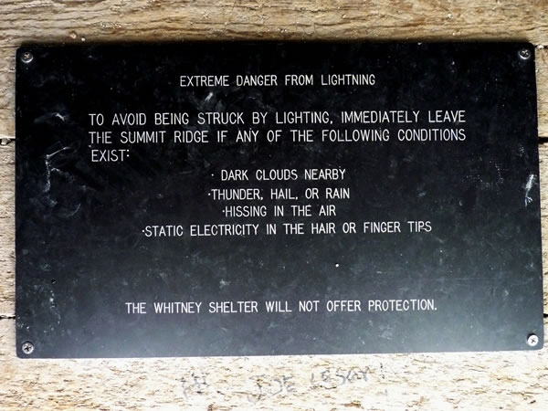 to use the Whitney shelter if there’s any likelihood of lightning.