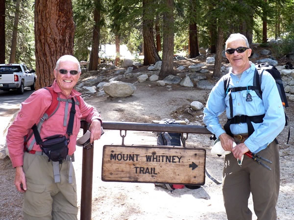 Finally, however, we got back to the trailhead at 3:45 pm. The climb and the descent had taken a total of 14 hours and 5 minutes. By way of comparison, climbing and descending Mt Hood (Oregon) took us less than 11 hours; Eric’s and my King’s Peak (Utah) summit day was exactly 13 hours long; and when we climbed Mt Ossa (in Tasmania), it took us 13 hours and 20 minutes. The only day longer than our one on Mt Whitney that Eric and I have had while “peak-bagging” was our summit day on Mt Rainier: it was 16 hours and 10 minutes long. We were very pleased with our time, though. Charlie and Diane Winger give the “average round trip hiking time” for a one-day Whitney climb as being from “14 to 18 hours”: we were delighted to be at the sharp end of the equation – not bad for two people in their late sixties! |