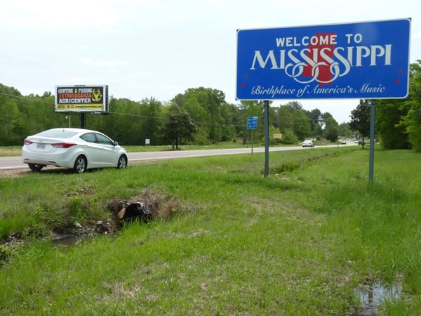 After leaving Little Rock, the capital of Arkansas, on Tuesday morning, 29 April 2014, I drove east on interstate highway I-40 to Memphis, Tennessee, then dipped south and entered Mississippi for the first time at 11:45 am. |
