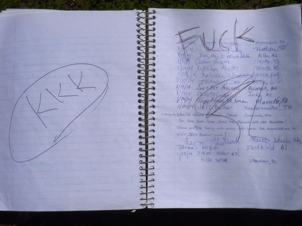 Sadly, too, there were also obscenities and racist rants inside the summit register.