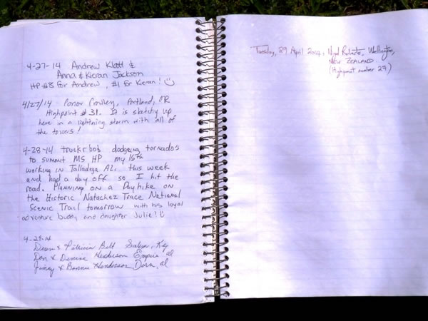 I filled in the summit register, and noticed – among other things – that I was the seventh person to visit the Mississippi state highpoint on 29 April 2014, and that Conor Crowley from Portland, Oregon, who’d visited the summit of Mt Magazine, Arkansas, shortly before I’d done so on 27 April, had been at the top of Woodall Mountain on 28 April and found it “sketchy … in a lightning storm”! |
