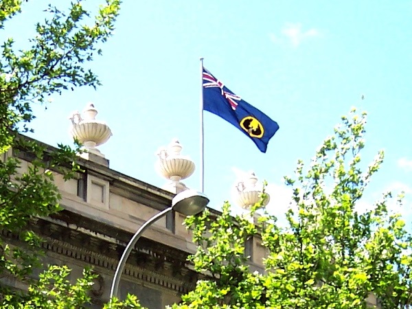 ![]() In May 2013, my Canberra-based climbing partner, Eric Hodge, and I set out to climb Mt Woodroffe / Ngarutjaranya, the highest mountain in South Australia. However, because our base for the climb was Uluru / Ayers Rock, which is in the Northern Territory – and not in South Australia – I was unable to get any photographs of the South Australian state flag with its distinctive magpie in a yellow circle, so this picture that I took some years earlier of the state’s flag above the South Australian parliament will have to do instead. |