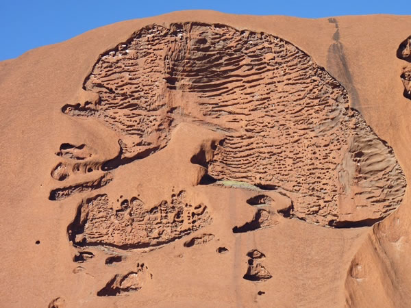 A close-up of some of the honey-combed weathering high up on northern side of Uluru / Ayers Rock.