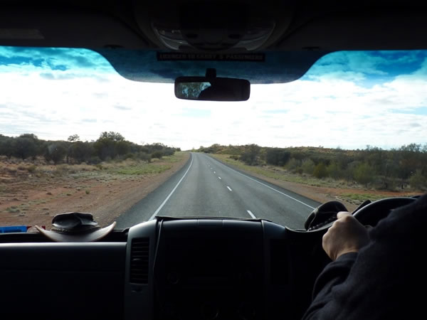 Heading east along the Lasseter Highway towards Curtin Springs Station.