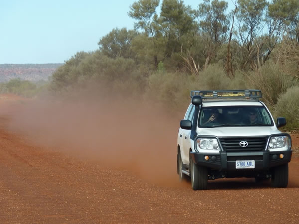 A four-wheel drive vehicle coming towards us on Mulga Park Road.