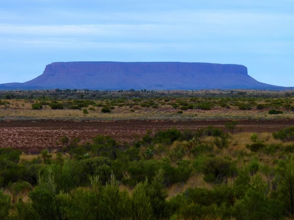 Mt Conner was on the eastern side of Mulga Park Road (i.e., it was on our left as we drove south). It has been described as the “most easterly of central Australia’s giant tors or monoliths”, and is often mistaken for Uluru / Ayers Rock by tourists driving along the Lasseter Highway. |