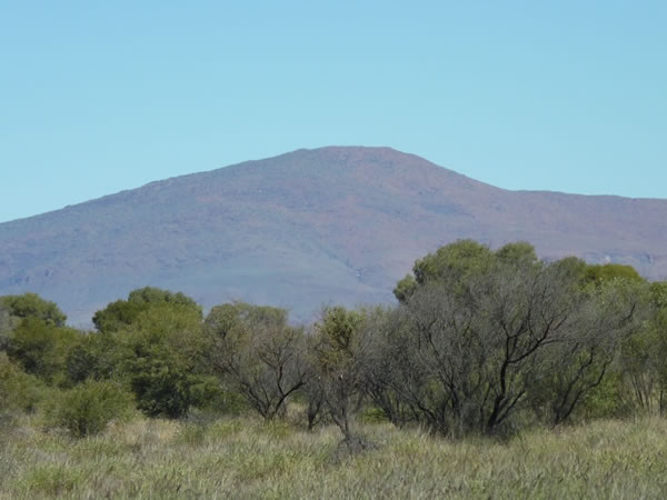 A closer view of Mt Woodroffe as we travelled along bush roads towards it. According to Aboriginal lore, the mountain resembles a large perentie lizard-man (or a goanna-man).