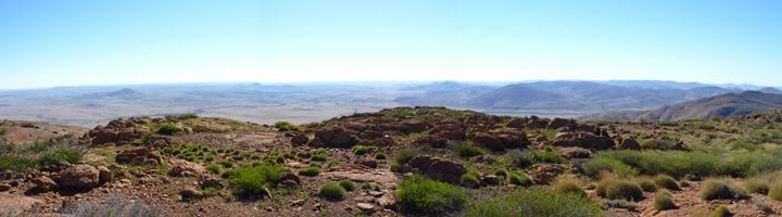 A three-shot panorama looking north-east across South Australia’s APY Lands towards the Northern Territory.
