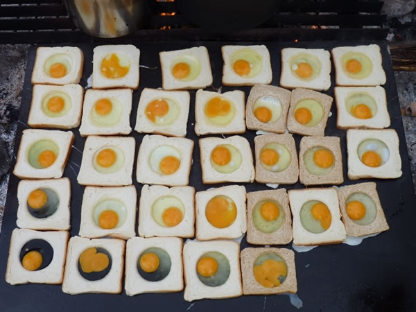 ... toad in the hole (which is what Australians call eggs fried in bread-slices. I must admit that until I saw these toads, I’d always associated “toad in the hole” with sausages cooked in batter – oh well, I guess I’m betraying my northern hemisphere origins). |