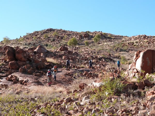At 9:25 am, Eric photographed Heloise (towards the right-hand edge of the picture) leading the way up yet another of Mt Zeil’s many inclines, followed by Manoli, Katie, Rachael, and me.