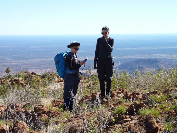 Shortly before 11:00 am, we reached the 1,400-metre contour, and Heloise (seen here using a GPS to check her location) and Katie stopped their ascent of the mountain in order to start collecting the traps they’d set.
