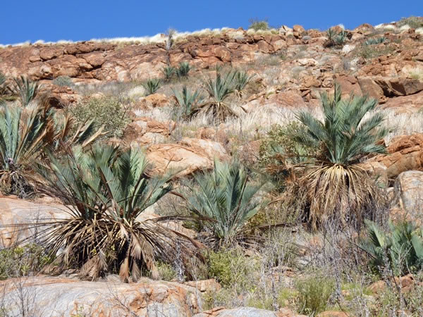 Near the summit of Mt Zeil there’s a grove of cycads, ancient palm-like plants stemming from the Jurassic period. The fact that they’re able to survive on such steep rocky slopes is said to be “a relic of times when more hospitable climates prevailed” in central Australia. |