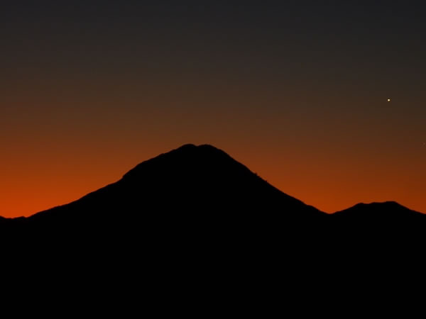At 6:40 pm, Venus was the only star visible while an orange glow illuminated the sky behind Mt Heuglin.