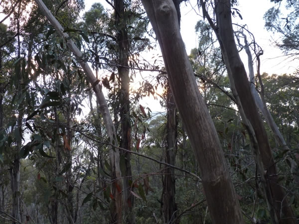 A eucalyptus forest beside the Murray Gap Fire Trail.