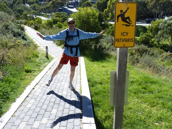 Despite Eric's best attempts to slip and fall, the pathways weren't icy or fatal at the height of Australia's summer, so we carried on regardless …