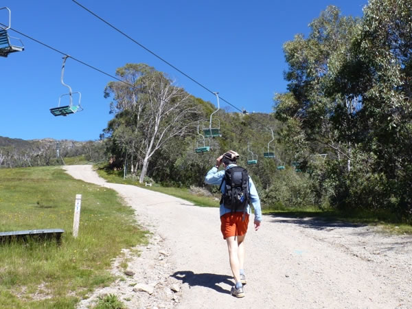 Eric heading up a short section of road beneath one of the valley's chairlifts.