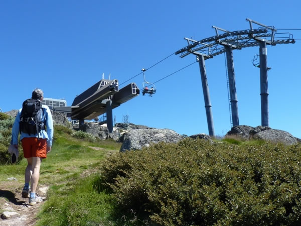 Eric completing the climb up the valley wall the hard way, while a couple of day-trippers get to the top the easy way.