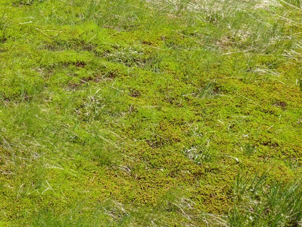 The boardwalk protects fragile alpine vegetation – such as this mossy patch …