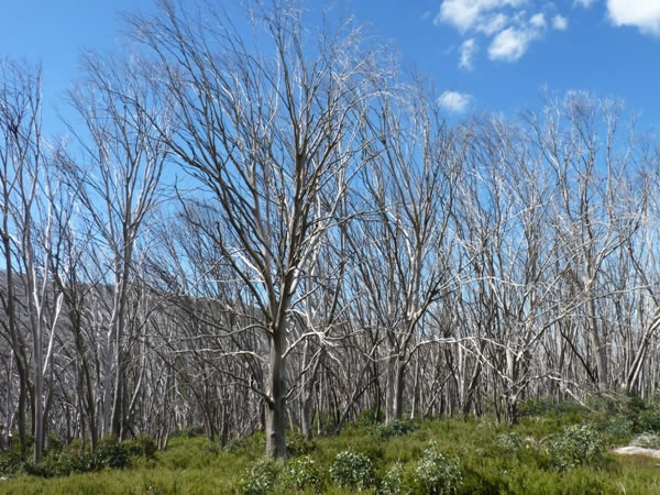 Eric and I left Thredbo on Tuesday morning, 5 January 2010, and soon drove through some of the eucalyptus forests burnt in the January 2003 bushfires.