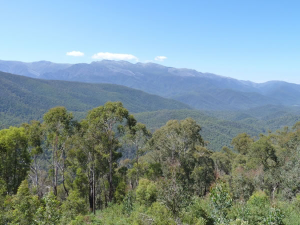 From a lookout near Khancoban, we looked back at the western side of the Snowy Mountain range.