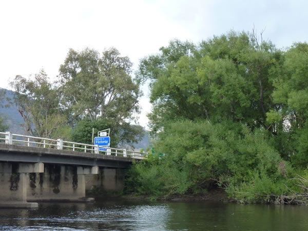 Standing in New South Wales, I took this photograph looking across the Murray River into Victoria. Eric and I then crossed the bridge and drove on towards the highest mountain in Victoria, Mt Bogong, but that's another adventure ... and in due course will be the subject of another web-album!(This is the last picture in this album.) |