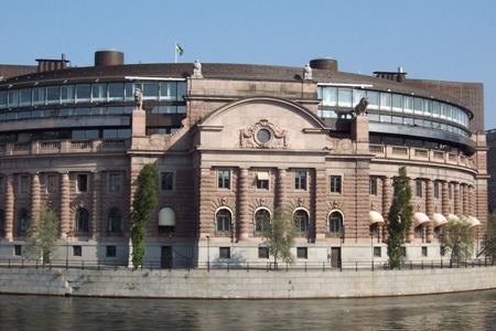 The Swedish parliament, or Riksdag, in Stockholm. Additions made to