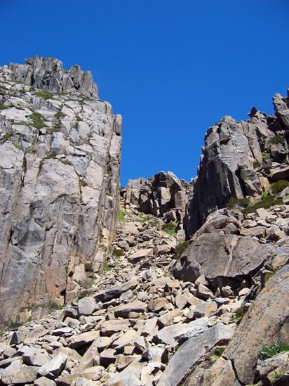 The boulder-field that we had to negotiate as we climbed the gully. Thankfully, the boulders were pretty stable – a far cry from the loose talus I have climbed on in Montana and Wyoming.