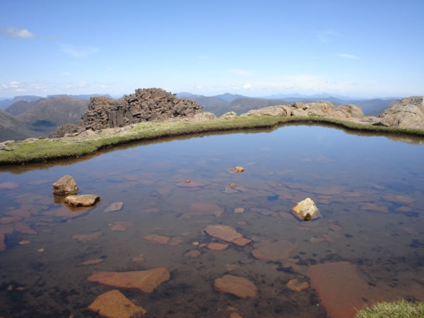 A small tarn on the western edge of Mt Ossa's summit plateau. (Photo: Ralph Baulis)