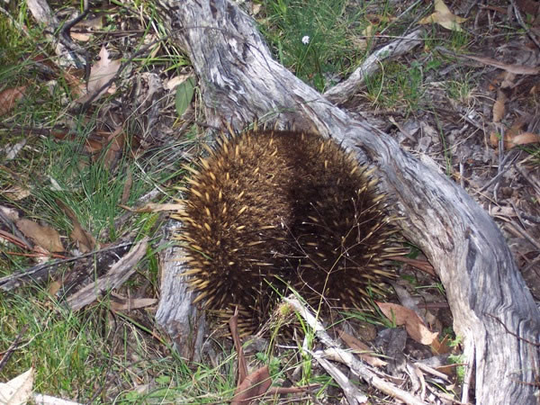 The only other wildlife that we saw* was this short-beaked echidna, which – like the duck- billed platypus – is an egg-laying mammal. (*: Well, Ralph saw a snake, but Eric and I didn't!)