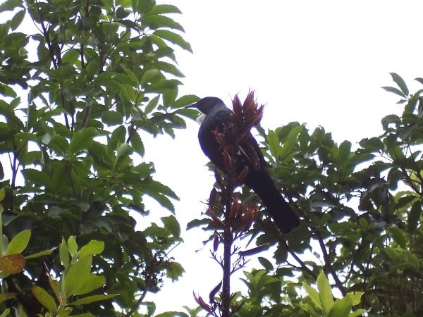Although this isn't a particularly good photograph of a tui, it does show its tuft quite well –