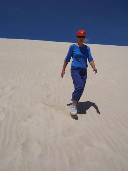 Running down one of the dunes in Little Sahara.