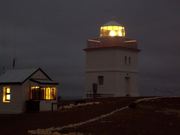 The Cape Borda lighthouse at night.