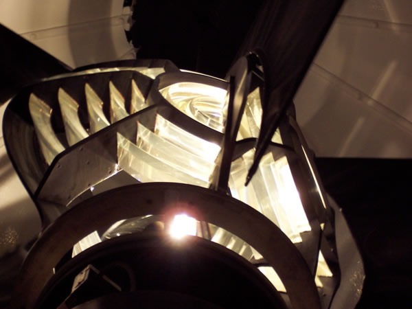 A night-time view of the light in the Cape Borda lighthouse.