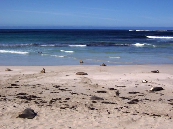 Sea lions on Kangaroo Island's Seal Bay beach.